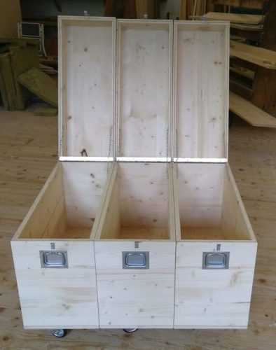 Unsere Grundidee war eine modulare, leichte und kompakte Patrullenkiste, zum Auseinandernehmen und wieder zusammensetzen. Dadurch wollten wir das Problem lösen das Patrullenkisten oft sehr sperrig und schwer sind, und nicht leicht in Autos oder im Zug transportiert werden können da sie zu groß sind. Außerdem besteht so die Möglichkeit je nach Bedarf nur Teile der Kiste mitzunehmen.